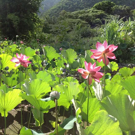 Upon arrival at the stables, riders receive a safety demonstration and meet their horse. Once in the saddle, the trek takes a leisurely pace allowing riders to appreciate an unforgettable perspective of Waipi’o’s incredible beauty while our horses lead the way. Our local guides share the legends and history of this rich cultural landscape throughout the journey. Meander alongside the food crops of old; green fields of kalo, rare Hawaiian bananas, sugarcane, coconut and breadfruit, to name just a few. When in season, get a close up view of the sacred lotus flower and savor the taste of exotic fruits from the family farm. Be sure to bring a camera so our guides can capture the keepsake of a lifetime.